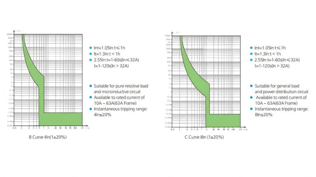 - Type C: Commonly used for inverter outputs due to moderate inrush currents